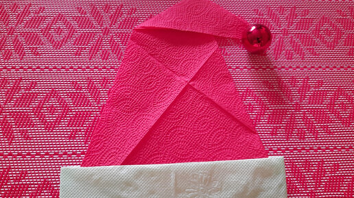 Доброго времени суток, друзья! Побежали, полетели денечки на встречу к Новому Году! Надо многое успеть. Я сейчас про салфетки затею разговор. Как красиво их подать? Ой, сейчас из салфеток творят такое, что залюбуешься! Но мне некогда! А потому выучила самый быстрый способ сложить обычную салфетку и и все довольны! Это очень просто! Главное, лично для меня, взять салфетку красного цвета. Можно любую, чтобы сделать колпак головной убор то ли Санты, а может, гнома. Берем обычную бумажную салфетку...