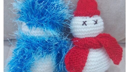 Как я связала второго снеговика в пушистых шапке и шарфике+муки творчества