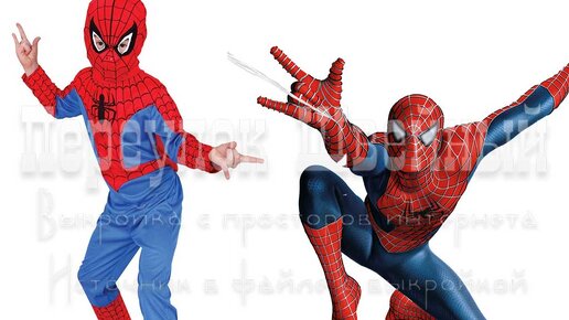 Выкройка костюма Человека Паука для детей младшего школьного возраста. Состоит из комбинезона и машки-капюшона. Делить на блоки из красной и синей ткани предлагается самостоятельно. Для пошива подойдут трикотажные полотна малой и средней плотности...