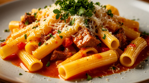 Даже самый простой соус меняет блюдо полностью. Базовый вариант: Соус обволакивает пасту и делает блюдо цельным. Небольшое количество сыра, добавленное в горячую пасту, создаёт нежную текстуру. Важно: Так блюдо выглядит домашним, а не «столовским»...