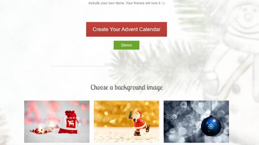 Календарь обратного отсчета отслеживает время до прихода Рождества. Владелец календаря может открывать одну дверь в день, вплоть до Рождества (24 декабря) или Рождества (25 декабря). По традиции это открытка или картонный домик с окошками, открывая которые ежедневно, находишь внутри сюрпризы в виде конфет, шоколадок, записок с пожеланиями, а также другие подарки. Календари бывают и в виде мешочков, пакетиков, сумочек или свёртков, развешанных на ленте. А можно сделать свой онлайновый Адвент-календарь обратного отсчета и дать на него ссылку...