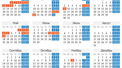 Календарь праздничных дней, утвержденных государством РФ