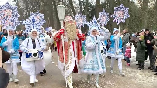 В парке Калуги Дед Мороз и Снегурочка возглавили новогодний парад