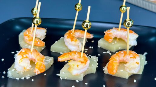 Добро пожаловать на канал "Вкусная Жизнь"! Рада приветствовать своих постоянных читателей и всех, кто заглянул ко мне впервые! Сегодня приготовим две очень вкусные закуски из креветок на праздничный стол. Ингредиенты: КАНАПЕ С КРЕВЕТКАМИ И АНАНАСОМ: 1. Креветки - 10 шт. 2. Ананасы - 3 кружка. 3. Кунжут - по вкусу. 4. Соус терияки - по вкусу. КАНАПЕ НА КРЕКЕРЕ: 1. Крекеры (круглые) - 10 шт. 2. Помидорки черри - 5 ши. 3. Креветки - 20 шт. 4. Сливочный сыр - 50 гр. 5. Любая зелень для украшения Способ приготовления: 1...