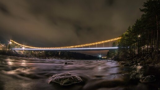 В Кандалакше пешеходный мост через реку Нива украсили новогодней иллюминацией. Как отмечают местные жители, в городе появилось новое место для проведения фотосессий.