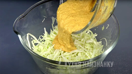 Я лук раньше так готовила. А сегодня решила вместо лука взять капусту. И нам понравилось! Очень вкусно и необычно. Друзья тоже оценили на "отлично". Поэтому с уверенностью говорю, что и на праздничный стол можно подавать в качестве закуски! КАК ГОТОВИТЬ: Капусту нарезаю тонкой соломкой. Можно взять специальную терку - будет и быстрее, и красивее. Но я привыкла это делать ножом. Перекладываю капусту в миску и немного "жмакаю" руками, чтобы капуста стала помягче. В другой емкости соединяю муку, соль и специи...
