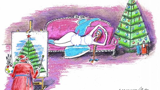 Праздничные карикатуры на злобу дня: про Деда Мороза, застолье и символ Нового года