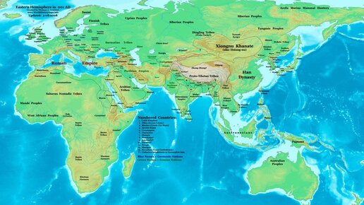 Карта народов и политическая карта Мира в 1 году от рождества христова.