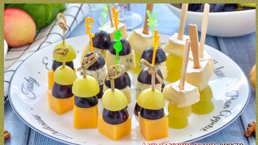 Доброго всем дня, милые дамы! Новый год приближается к нам просто семимильными шагами. Как же быстро мчится Время! Я уже ворошу свою тетрадь с пп-рецептами: так привыкли с мужем есть правильную пищу, что хочется и на праздничном застолье видеть пп-блюда. Начинаю делиться рецептами, на которые уже "положила глаз". Сегодня - рецепты канапе. -------------------------------- Самые ходовые в нашей семье - это "Трио на шпажках". На картинке - фото из интернета. Ингредиенты: Приготовление" 1. сыр нарезаем кубиком...