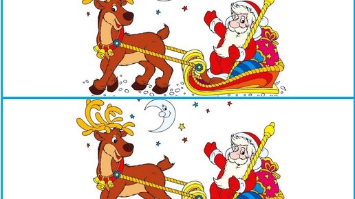 Найдёте на картинках с Дедом Морозом на санях 6 отличий. Разминка для глаз
