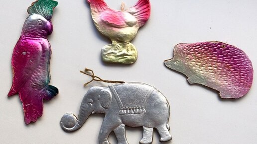 Картонажами обычно называют изящные изделия из картона: разные коробочки, ящички, украшения на елку. Картонажные елочные игрушки были одними из самых дешевых новогодних украшений, производить их начали в последней трети XIX века. Картонажные игрушки - объемные и плоские - обычно изображали животных, птиц, рыб, насекомых, позднее - военную и гражданскую технику (дирижабли, самолеты, парашюты, автомобили и др.). Самыми знаменитыми были "дрезденские картонажи" - такое название фигурки получили потому, что их начали производить в окрестностях Дрездена примерно в 1870 году...