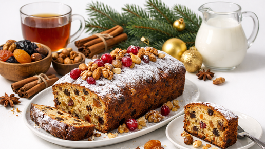 Новогодний кекс с сухофруктами и орехами, который получается всегда и не крошится