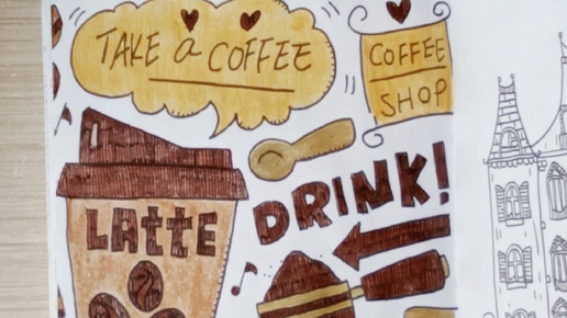 Раскрашивала тематические картинки к Международному дню кофе
