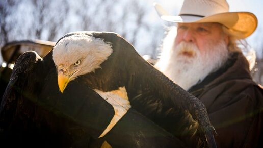 Белоголового орлана по имени Кристмас выпускают обратно в дикую природу в Крейне после реабилитации.