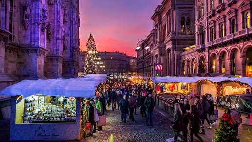 Италия - Рождественский базар в эпоху пандемии в центре Милана, часть1