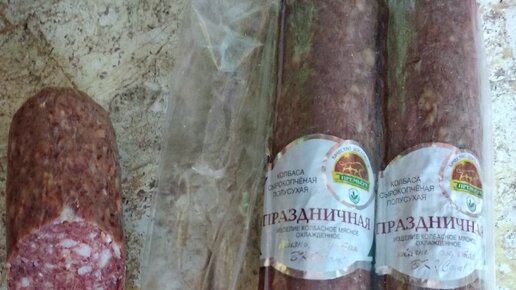 Всем доброго времени суток! Сегодня хотим поделиться обзором колбасы, приобретенной в магазине Светофор. Ранее мы уже совершали покупки сырокопченой колбасы в данном магазине об этом если интересно можно посмотреть здесь... Сегодня же мы делимся впечатлениями о колбасе сырокопченой сухой с названием "Праздничная" от ООО "Вкус" Республика Хакасия, р.п. Усть-Абакан. Колбаса продавалась упакованной по три небольшие палочки, вес каждой по 230 грамм, обошлась нам упаковка в триста с небольшим рублей,...