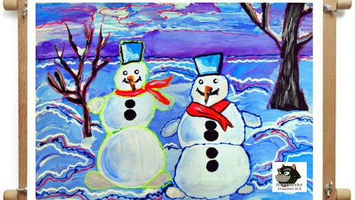 Мастер-класс для детей с пошаговым фото"Снеговики" Автор: Никита Павлов 10 лет, обучающийся «Детской художественной школы имени А.А.Большакова», город Великие Луки, Псковская область.