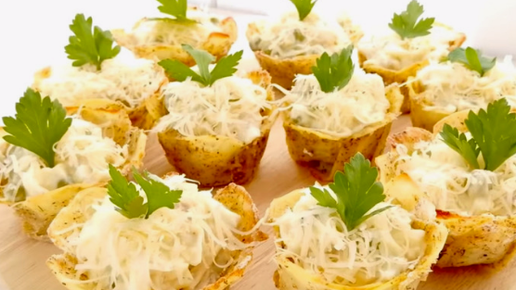 Рецепт чудо-корзинок. Невероятно вкусное и красивое блюдо. Корзиночки готовятся из картофеля и нежной сливочной начинки. Украсит любой стол и удивит гостей своим вкусом. Запоминайте рецепт. Итак для начала в миску разбиваем яйца и наливаем воды. Взбалтываем все венчиком. Затем сырой картофель очищаем и нарезаем очень тонкими ломтиками. Например с помощью овощечистки или комбайна. Далее ломтики перекладываем в яйцо. Муку солим и насыпаем любимую приправу. Я использую для картофеля слегка острую и с чесноком...