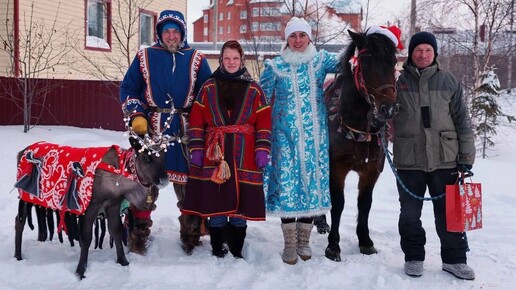 Олень и конь в новогодних костюмах поздравили ветеринаров Ямала