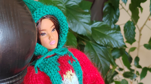 Вяжем новогодний костюм на куклу Barbie. Описание.