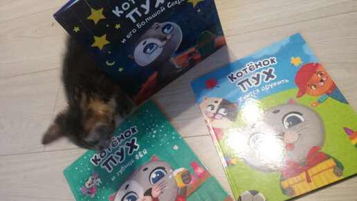 Знакомьтесь, это Пух! Он очень милый, добрый и храбрый. Покупала эти книги для сына. Так как ему необходимые теплые сказки. И честно не прогадала! Они теперь для него самые любимые! С удовольствием слушает их. Хотя редко он внимательно слушает, но тут они действуют на него по особенному! Котёнок Пух учится дружить, книга про взаимоотношения в детском саду, про дружбу! Котёнок Пух и зубная фея, про уход за зубками и лечение, про смену молочных зубов и зубных врачей...
