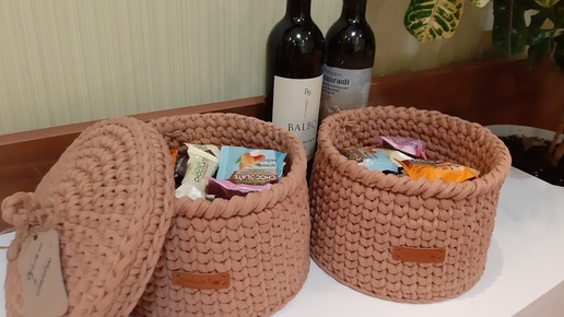 Середина октября. Пора подумать о новогодних подарках. Знаете, иногда подарок есть, а положить его некуда. банальная коробка или еще более банальный пакетик ну совсем не придает подарку праздничного вида. Как правило на новый год дарят много сладостей, вкусняшек, бутылок с вином, шампанским. Сегодня хочу показать изделия, которые вполне подойдут под тару для таких подарков. И все эти изделия созданы из трикотажной пряжи. Самый новогодний атрибут, сапожок. Туда можно поставить бутылку шампанского или любую другую бутылку...