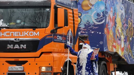 Главную новогоднюю ель в Москву везет Дед Мороз за рулем фуры со скоростью 50 км/ч