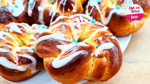 Булочки на Пасху праздничные - мягкое, волокнистое, сладкое, пышное, мелкопористое, сдобное тесто и интересная форма, которая украшена в одном стиле с пасхальными Куличами. Это не Булочки, как пух! Они совсем другие, те забудьте, даже сравнивать не стоит. Данная выпечка совсем другая, более плотная и очень вкусная, на простой хлеб точно не похожа. Благодаря небольшому количеству дрожжей для очень сдобной выпечки, булочки медленно поднимаются и получают совсем другой вкус и структуру. Конечно, если у вас нет времени, то просто увеличивайте дрожжи в 2 раза и сократите время на подъемах теста...