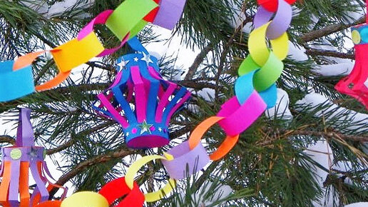 В канун Нового года просто необходимо радовать себя занятиями с нашими неугомонными малышами! Это ценно для укрепления отношений между родителем и ребёнком. Неважно, что через 5-10 минут малыш будет заниматься своими делами, бегать, прыгать и садиться вам на голову! Главное - после, он будет гордо заявлять, что сделал эту поделку он! Для него это важно и необходимо, даже если мы думаем, что он этого не замечает. Итак, какие можно украшалки сделать из подручных материалов? Легко, быстро и нескучно!? - Бумажная гирлянда...