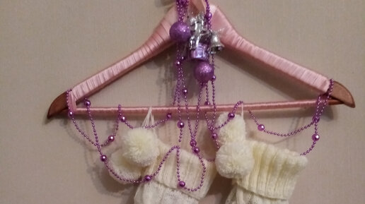 Не так давно к нам эмигрировала традиция вешать на Новый год носочки с подарками. В идеале их размещают у камина. Но высокий уровень жизни пока к нам не эмигрировал, поэтому его могут позволить себе не многие. Но это точно не повод отказываться от подарков в носках. А как их повесить оригинально мы придумаем! Забудьте о ручках дверей и шкафов. Все что вам нужно- это саморез в стене и деревянные плечики для одежды. В самом простом варианте на саморез вешаются плечики, на них носочки с подарками. Вполне можно уместить две пары...
