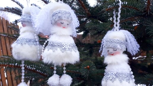 Куколки-снежинки для украшения елочки или их можно использовать как домашний декор.Мастер класс.