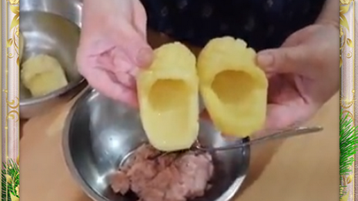 Такие лапоточки получаются очень вкусными и это оригинальное блюдо достойно, чтобы красоваться на Новогоднем столе! Ингредиенты: Картофель крупный – 6 шт. Фарш мясной – 500 гр. Можно сделать любой, какой Вы любите. Поскольку 2019 год "Свиньи" рекомендуют блюда из свинины не подавать на новогодний стол. Поэтому лучше сделать из птицы или рыбы. Способ приготовления картофельных лаптей с мясным фаршем: Картофель очистить и сделать из каждой картофелины заготовку в форме лаптя. Смотрите, как сделать...