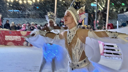 На открытом катке у кинотеатра «Искра» состоялось завораживающее ледовое шоу, вдохновленное классической сказкой Ганса Христиана Андерсена «Снежная королева». Несмотря на обильный снегопад, здесь собралось свыше сотни зрителей. Летящие снежинки только подчеркивали магическую атмосферу, превращая ледовую площадку в настоящий зимний сказочный мир. На льду фигуристы мастерски сочетали эффектные прыжки, акробатику и выразительную актерскую игру. Их наряды искрились под огнями шатра и новогодней елки, усиливая ощущение сказки...