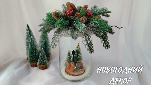 Добрый день, сегодня покажу вам легкую композицию, которую после новогодних праздников можно разобрать. И так нам понадобится, композиция из магазина fixPrice. У меня будет 2 в одной, т.к я совмещаю белочку и ёжика. Так же нам понадобится ваза или баночка в которую можно поместить пенечек Моя ваза из бывшего Леруа Мерлен, сейчас этот магазин называется Лемана про. Еще я использую проволочную гирлянду на батарейках 5м. Приклеиваю дополнительно 3ю ёлочку, каждую оплетаю гирляндой Дальше небольшой каплей горячего клея я скрепляю композицию и вазу, позже, будет легко их разъединить, т...