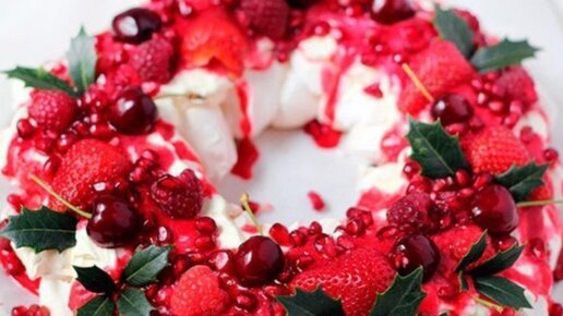ИНГРЕДИЕНТЫ: ☻ Белки – 4 шт; ☻ Соль – щепотка; ☻ Сахарная пудра – 300 г; ☻ Просеянная пшеничная мука — 2 ч.л.; ☻ Белый винный уксус – 1 ч.л.; ☻ Малиновое варенье – 3 ч.л.; ☻ Свежая или замороженная малина – 125 г (если свежей ягоды у вас нет, можно использовать любой джем); ☻ Лимон – ☻; ☻ Сливки – 300 мл; для декора: листики свежей мяты, ягоды. ПРИГОТОВЛЕНИЕ: 1. Взбейте миксером белки в крепкую пену, когда она станет устойчивой, аккуратно добавьте немного сахарной пудру, сок лимона, муку и уксус...