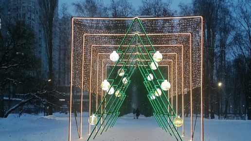 Прогуляться по вечернему украшенному к Новому году городу я всегда люблю. Правда заметила уже который год, в основном одно и тоже убранство . Но все равно иногда бывает что то новенькое или перестановки, что то из одного места перенесут в другое и как то заиграет иначе. Собираясь на эту прогулку просто хотелось получить порцию хороших эмоций. Очень люблю вечерние города в огоньках, это еще из детства у меня такая любовь. Начали мы свой путь из парка Быханов сад. Вот и новая перестановка, такой инсталляции тут не было...