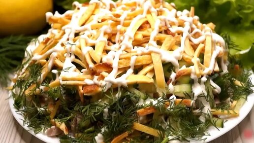 Салат «Соломка» — любимое блюдо Огненной Лошади на Новый год — вкуснее популярного «Цезаря»