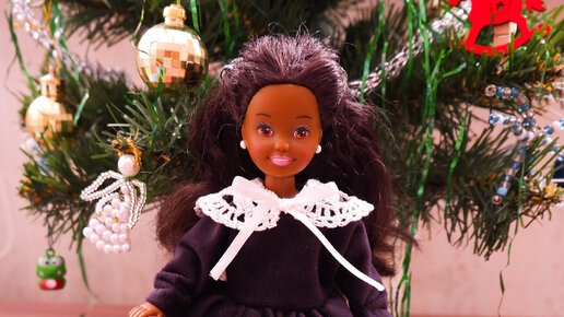 Новый год, как и День рождения, это все-таки праздник детства)) Именно оттуда все лучшие воспоминания и неугасимая вера в чудо. Возможно впечатления сильнее у тех детей, кого не плавно подводили к празднику (например, мучая адвентами по 45 дней)), а ставили перед фактом нарядной елкой. В этот раз я решила посмотреть на эмоции Стейси - младшей сестрички Барби, которая находится как раз в самом подходящем и милом возрасте, чтобы читать стишки и получать подарки под елочкой. Моя Стейси - афроамериканская...