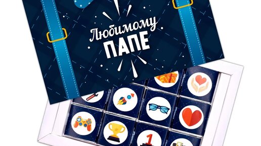 стоимость варьируется от 300 до 1000 рублей Это неплохой символический подарок к новому году с хорошими отзывами Посмотреть данный товар можно ТУТ Следующее это шоколадный набор " любимому папе " Этот набор способен тронуть сердце вашего близкого человека и зарядить его позитивным настроением!