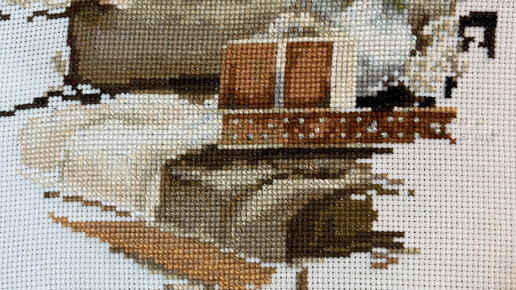 Если кто-то еще помнит этот набор - знайте - я тоже его не забыла). Да, я в этом году слишком увлекалась совместниками с миниатюрами, да и Гостю много «достается» сейчас, но тем не менее - изредка, когда останется немножко больше свободного времени, я по 100-200 крестиков вышиваю свое Белое Рождество. Очень мне конечно проблематично в последний год вышивать на мелком каунте - зрение у меня -7,5, но! Появилась дальнозоркость🤦♀️. Когда ты не видишь ни в даль, ни вблизи - редкостное удовольствие...