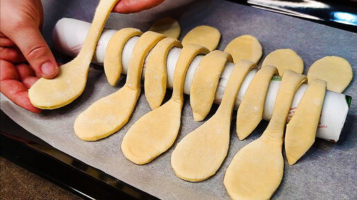 смазать желтком Способ приготовления: Берем пласт слоеного теста, любую ложку и вырезаем из теста ложечки...