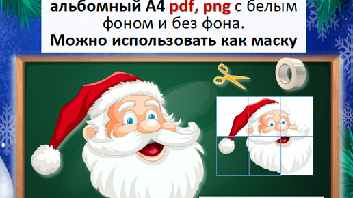Картинка «Дед Мороз» к Новому году 6 частей и A4. Оформление класса, доски, кабинета школы, детского сада. Маска Деда Мороза. Фотобутафория