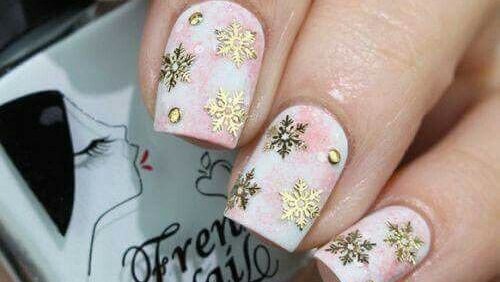 Впереди – неделя зимних каникул. Встречи с друзьями и близкими, посиделки в кафе и ресторанах, походы в кино да и просто вечера перед телевизором. Почему бы не сделать какой-нибудь нежный маникюр для такого прекрасного времени? Пусть он радует вас все новогодние каникулы! Перед вами – множество фотографий для вдохновения. 1. Геометрия, пастельные цвета и блестки. Добиться таких четких линий поможет скотч или лента для маникюра. 2. Нарисовать такую снежинку поможет тонка кисточка. 3. Розовый лак и много-много украшений! И стразы, и глиттеры...