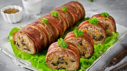 2 в 1 - Горячее блюдо и закуска на праздничный стол - Мясной рулет из фарша на праздничный стол!