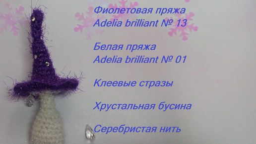 Шляпка. Вязание начинаем с макушки пряжей фиолетового цвета: 1 ряд: 4 сбн в кольцо амигуруми; 2-7 ряды: по 4 сбн в каждом ряду; 8 ряд: (1 сбн + прибавка)х2=6 петель; 9 ряд: 6 сбн; 10 ряд: (2 сбн+прибавка)х2=8 петель; 11 ряд: 8 сбн; 12 ряд: (3 сбн+прибавка)х2=10 петель; 13 ряд: 10 сбн; 14 ряд: (4 сбн+прибавка)х2=12 петель; 15 ряд: 12 сбн; 16 ряд: (1 сбн+прибавка)х6=18 петель; 17 ряд: 18 сбн; 18 ряд: (2 сбн+прибавка)х6=24 петли; 19 ряд: (3 сбн+прибавка)х6=30 петель; 20 ряд: 30 прибавок (2 сбн в каждую петлю)=60 петель...