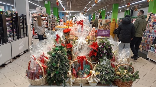 «Это на Новый год!». Начали с мамой покупать продукты к празднику. Новогодний ассортимент супермаркетов Нижнего Новгорода.