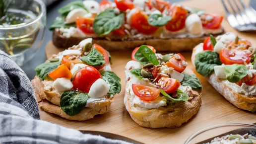 Брускетты — это не просто закуска, а универсальный способ удивить гостей изысканным вкусом, не затрачивая много времени. Хрустящий хлеб, ароматные добавки, свежие овощи и сыры превращают обычную гренку в кулинарное произведение искусства. Такой вариант идеально подойдет как для новогоднего застолья, так и для уютного фуршета с друзьями. Сложность: легко