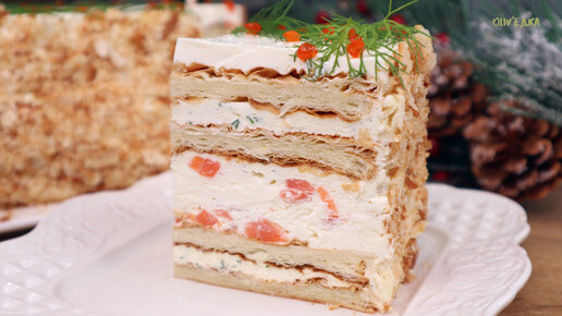 Буду обязательно готовить на Новый год этот несладкий закусочный тортик. Эффектный и нежный, понравился абсолютно всем