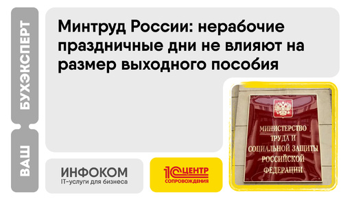 Минтруд России: нерабочие праздничные дни не влияют на размер выходного пособия