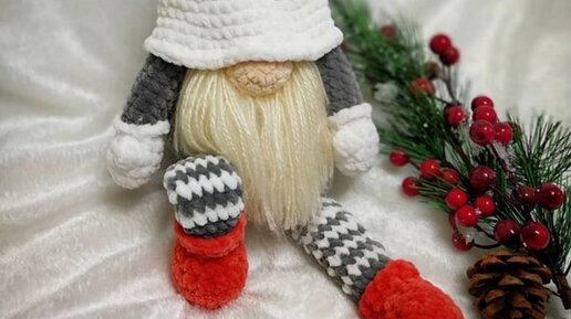 Рождественский гном крючком. Мастер-класс.